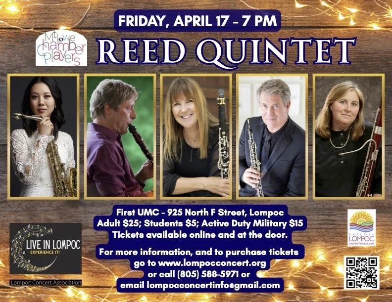 カリフォルニアに戻った後は、セントラルコースト地域のロムポックにてMt. Lowe Chamber Playersとのリード五重奏の公演にも参加いたします。今回が初共演となり、大変楽しみにしております。
